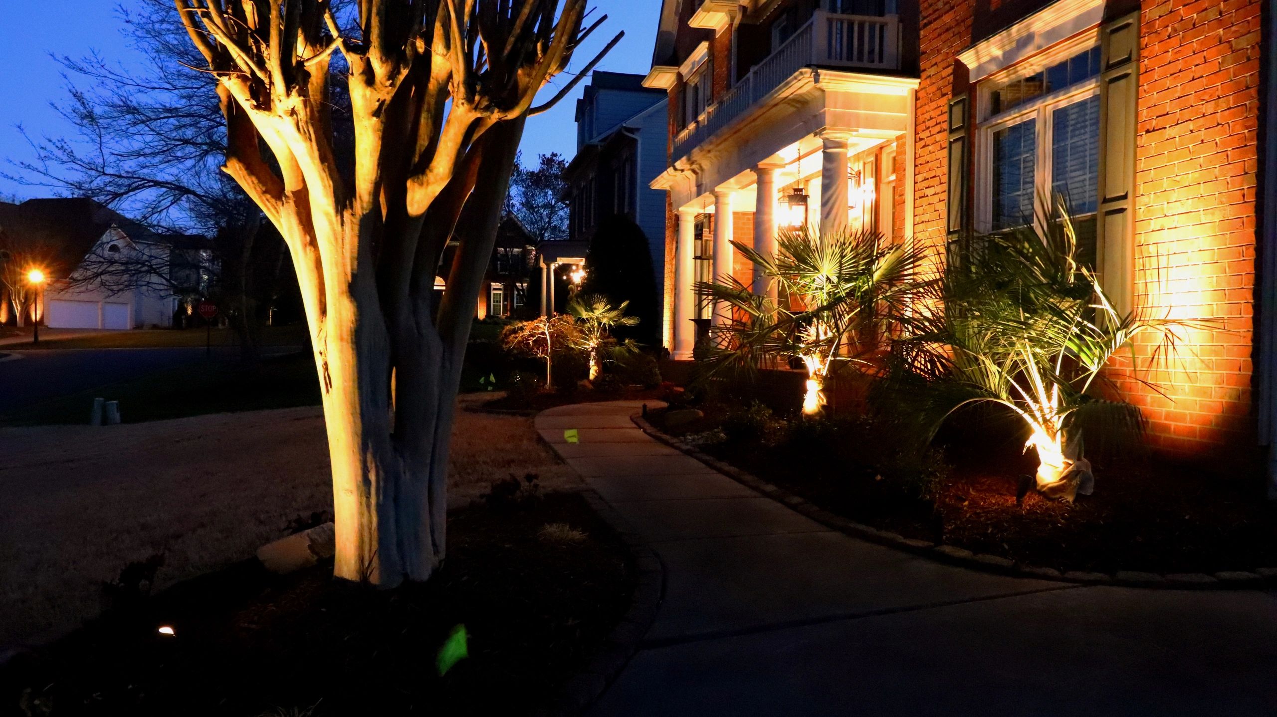 We design and install landscape lighting. We create a photo-realistic rendering so you can visualize the design. Our approach is to create dramatic visuals for the nighttime landscape. We take the “less is more" approach, as in the areas left dark are just as important as the illuminated areas.